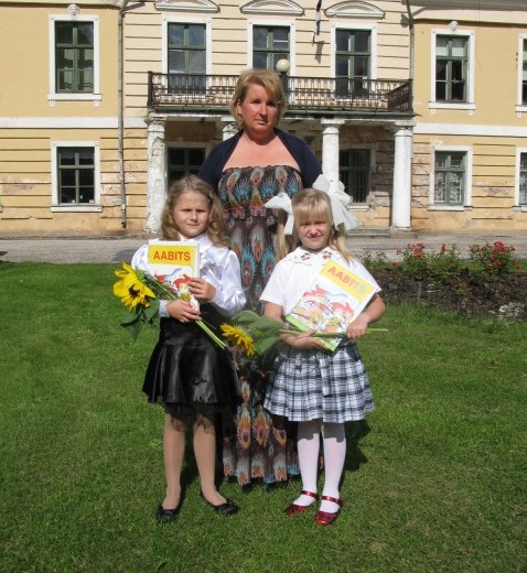 1. klassi õpilased Marleen Põhako ja Astrid Põhako koos õpetaja Ruth Lobjakasega.