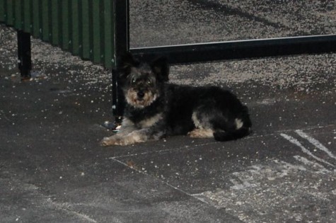 Uuemõisa mõisa juurde viivast ringristmikust paarkümmend meetrit Tallinna poole bussipeatuses peab valvet väike koer, kes paistab olevat maha jäetud.