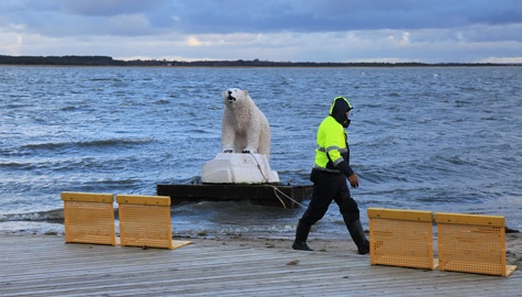Täna viidi Tagalahest läheneva talve eest varjule jääkaru kuju.