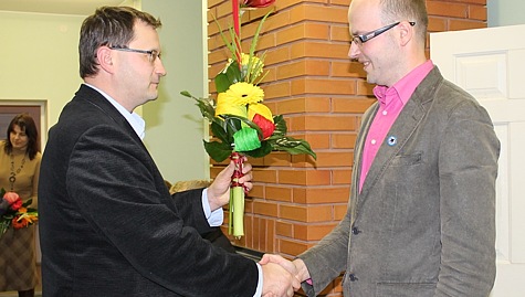 Kolm endist volikoguesimeest tänasid oma vallavanemaid – Ülle Ermanit, Arno Kelnikut ja Rein Kruusmaad – tehtud töö eest.
