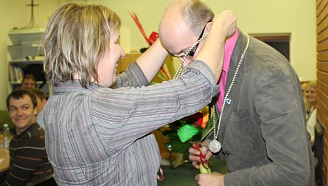 Lääne-Nigula uus vallavanem Mikk Lõhmus õnnistati täna pärast hääletuse tulemuse selgumist rituaalselt ametisse, kui endised Risti, Taebla ja Oru vallavanemad riputasid talle kaela oma ametirahad.