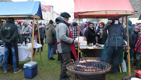 Täna keskpäevast kella kolmeni päeval Haapsalu vanalinnas kodanike torni juures peetud Vene laadale kogunes kehvast ilmast hoolimata päris palju rahvast.