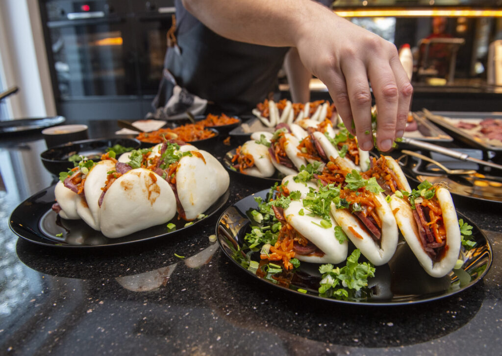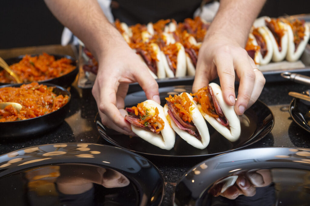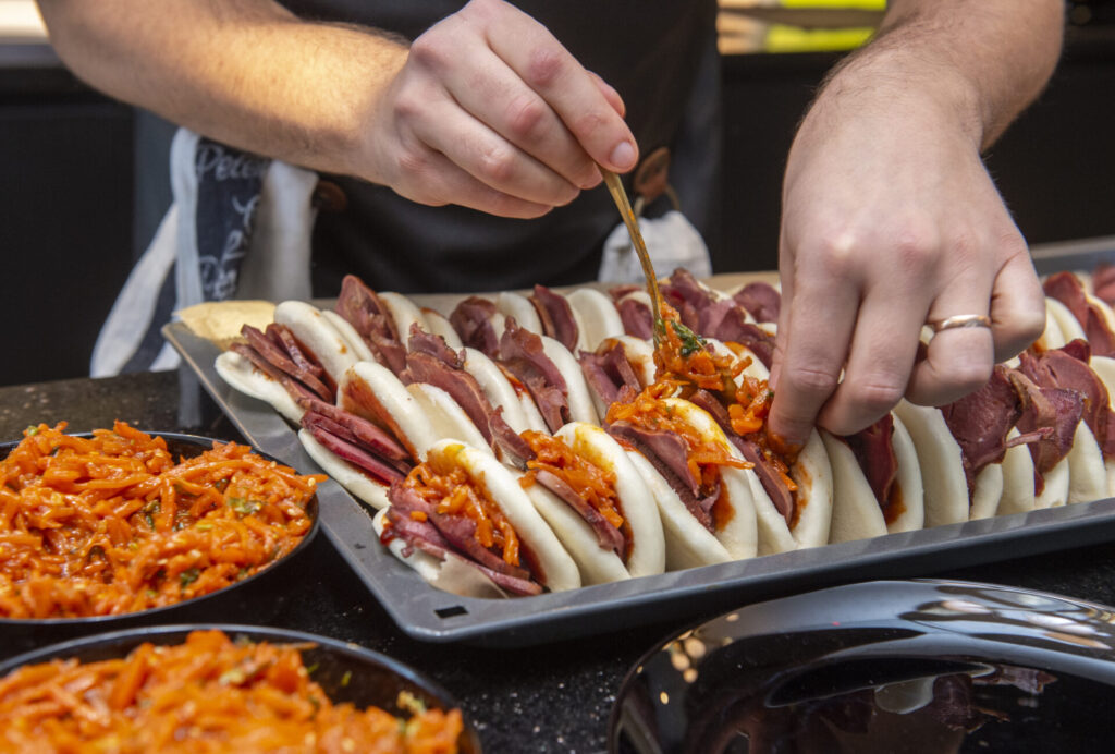 Auruta Bao kuklid vastavalt nende pakendil toodud õpetusele. Määri kukli sisekülgedele magusat chipotle BBQ kastet, lisas sinna vahele Korea porgandisalat ning Nõo Lihatööstuse suitsutatud seakeel. Puista peale röstitud seesamiseemneid.