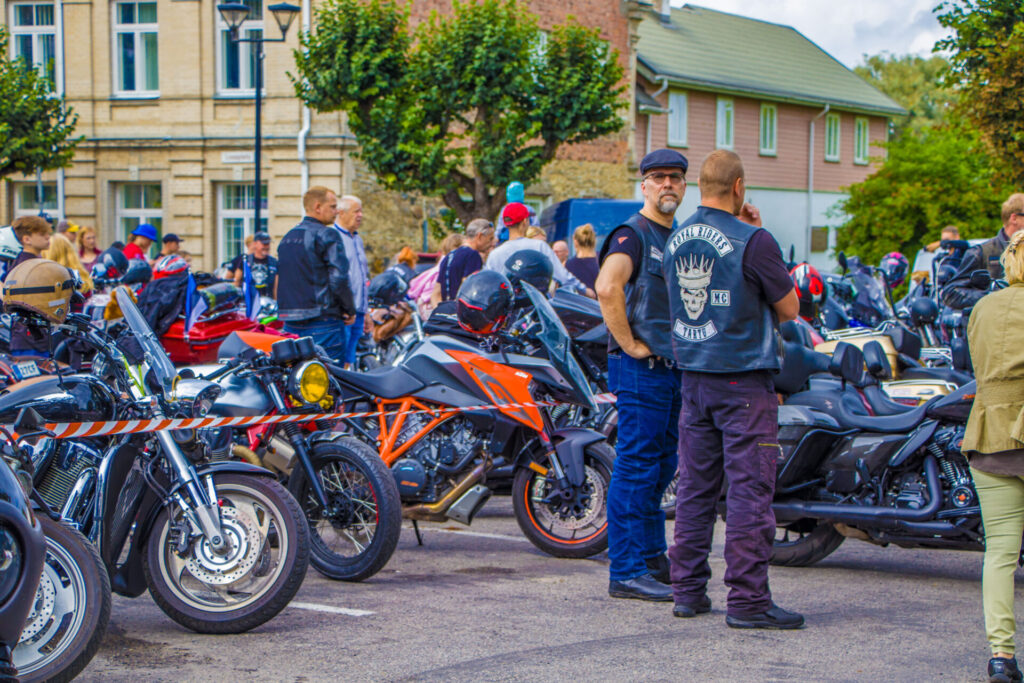 Umbes 30 uhkemat mootorratast oli sätitud raekoja esisesse parki näitusele.