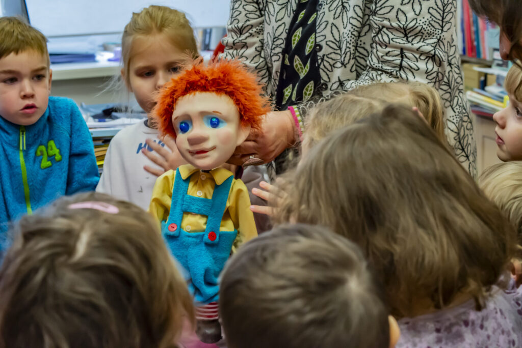 Kui Haapsalu Tõrukese lasteaia põnnid kolmapäeva hommikul lasteraamatukogusse jõudsid, olid nukud juba kohal: marionetid ja varrasnukud, käpik-, näpu- ja lauanukud. Aga uks oli kõvasti ki