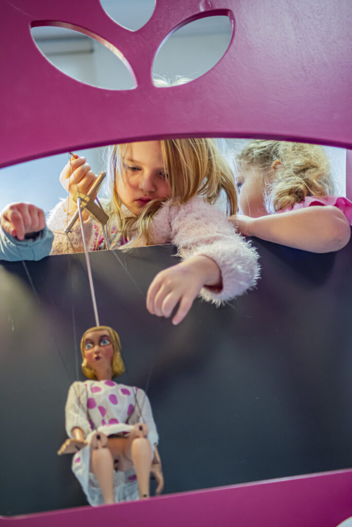 Haapsalu lasteraamatukogu esimese korruse suures toas valitsevad kuu lõpuni teatrinukud, kellega lapsed saavad ise näitemängu teha.