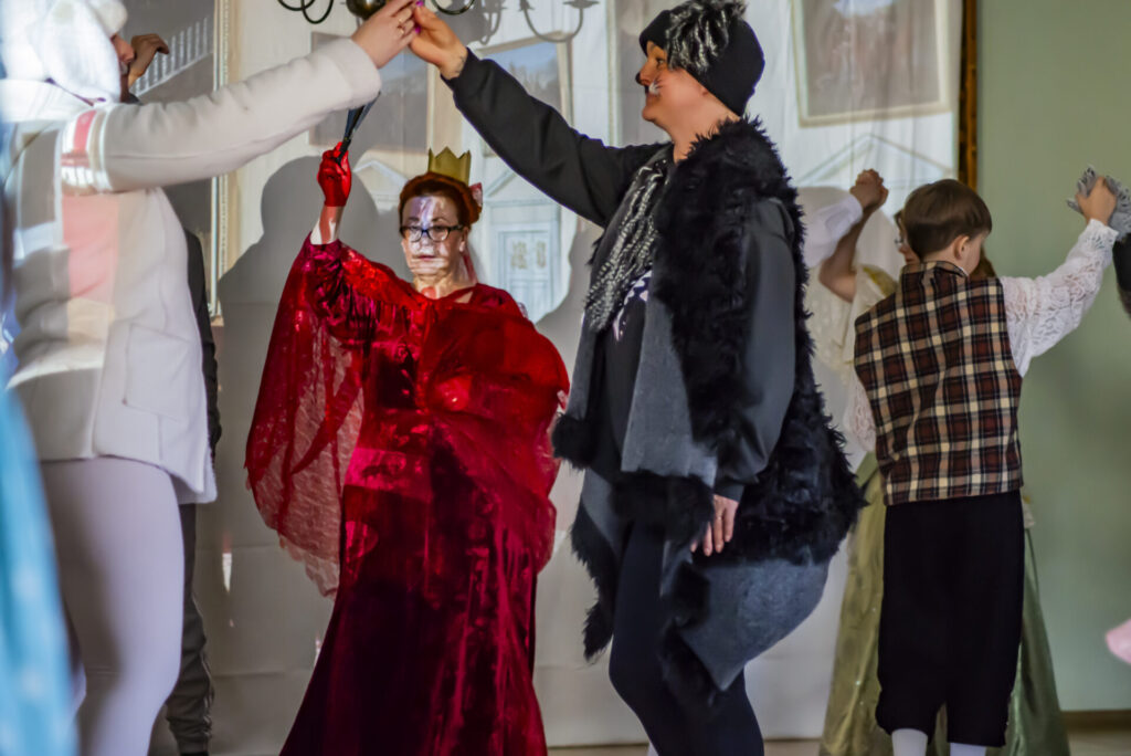 „Tere hommikust! Kas teate, mis päev täna on?” küsis publiku käest Viigi kooli õpetaja Ülle Ehala, kahar punane kuningannakostüüm seljas ja kroon peas. Peale neljapäeva oli teatripäev: paslik aeg lavastus koolipere ja lapsevanemate ette tuua.