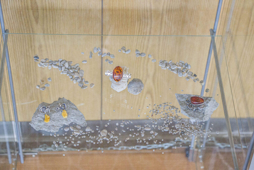 „Minu looming sünnib sellest, mis on olemas – mitte ainult looduses, vaid ka unustatud sahtlites, katkistes ehetes ja taaskasutuspoodide riiulitel,” kirjutab Vormsist pärit Koppelmaa näituse tutvustuses. Nii on kunagi merevaigust käevõru osadeks olnud merevaigutükkidest saanud sõrmused või prossid või hoopis midagi muud. „Merevaik on viimasel ajal saanud mu lemmikuks. Imelik, et kunagi mulle merevaik üldse ei meeldinud, ” ütles Koppelmaa Lääne Elule. Merevaigutükke on Koppelm
