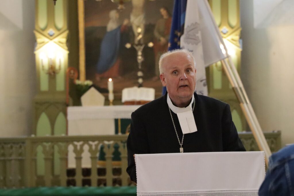 Teenistuse lõpuks andis piiskop Toplaan Kullamaa koguduse kaastöölisele Hillar Vessartile üle EELK tänukirja.