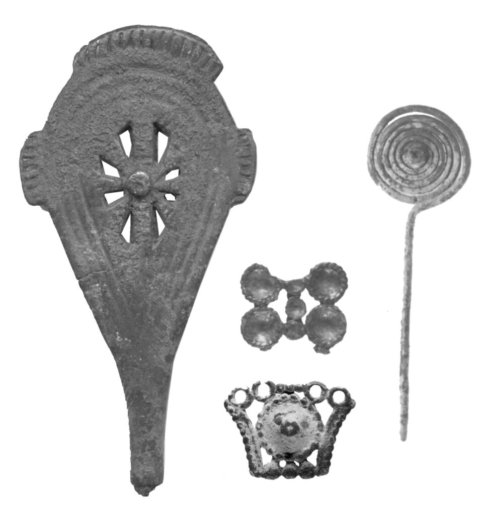 Meenub huvitav seik aastatel 1969–1972 toimunud Kõmsi kaevamistelt. Sealsest suurest tarandkalmest leiti suurte jõgede Okaa, Dnepri ja Volga ülemjooksu alalt pärit pronksist ehtenõel ja ehtenaastud. Leiti ka massiivsed käevõrud ja pronkspintsett. Tudengitest kaevajad imestasid – ikka väga kaugelt käidi ajaarvamise vahetuse paiku naist toomas.