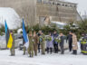 Noarootslased kogunesid vabariigi aastapäeva tähistama täna keskpäeval Hosbysse, Vabadussõjas langenud noarootslaste mälestusmärgi juurde.